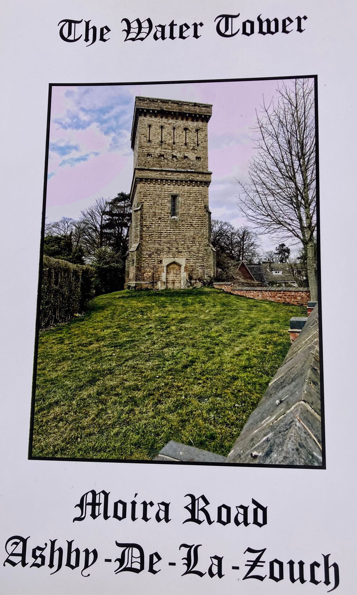 This grade II listed, 50 feet high Water Tower was originally built in 1853 and supplied water to Ashby de la Zouch. The Water works (comprising the Tower and reservoir) continued to supply the Town with water until 1899. By 1907, water from a reservoir near Woodville was now supplying the Town so the Water Tower was no longer operational.