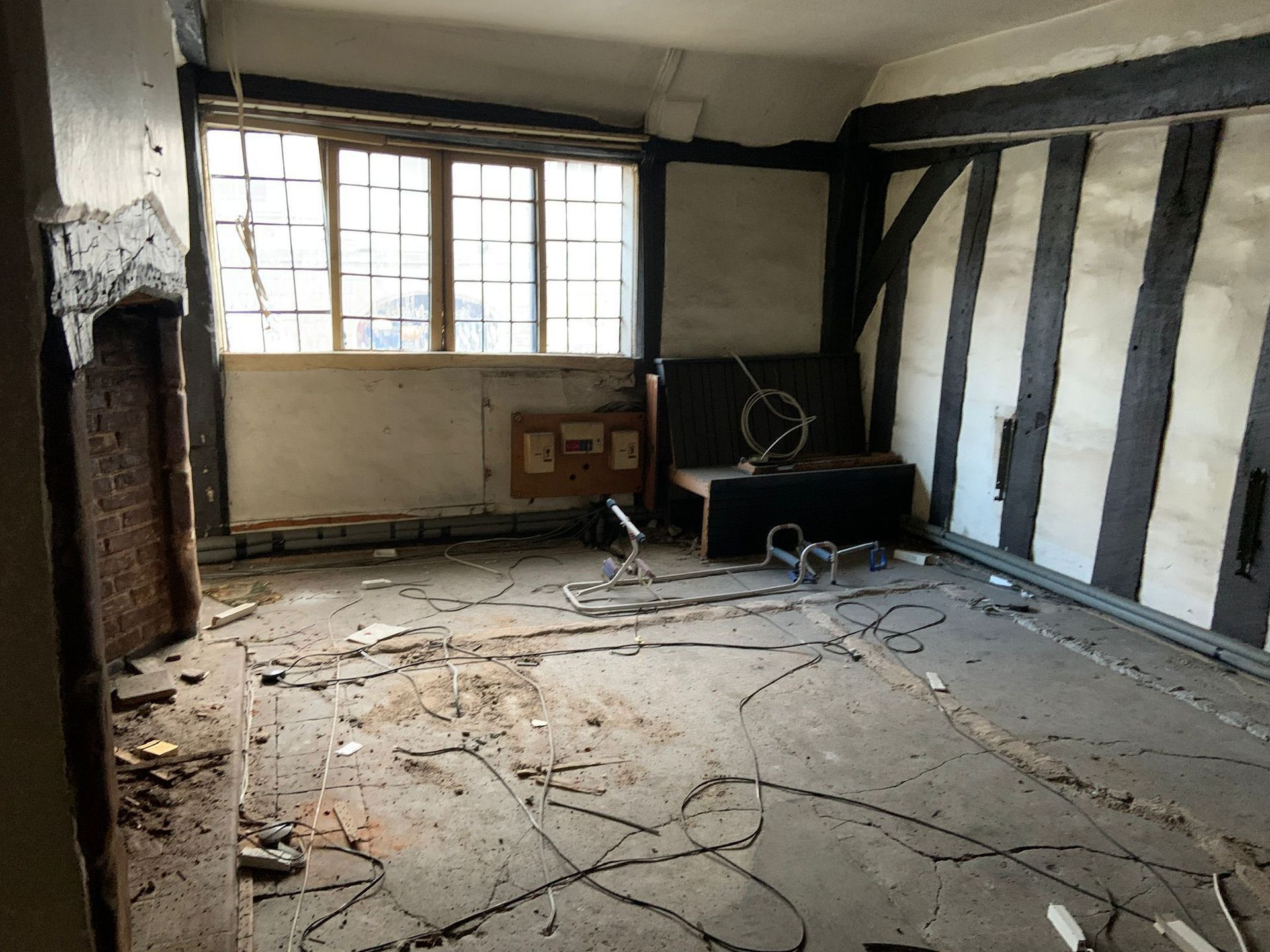 Above the main pub also lies an abandoned restaurant. There’s serving hatches, bar with optics, disused kitchen and a scorched chimney area, where an open fire would once have warmed happy diners!